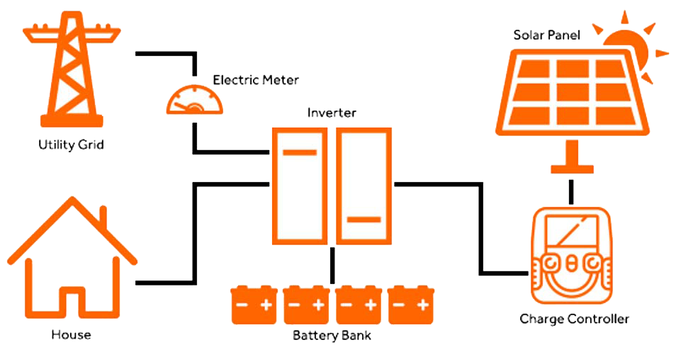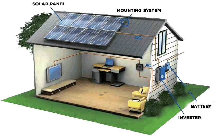 Solar panels generate DC electricity and charge the batteries or energy storage equipment.When the sun is available, solar panels generate electricity and transmit to the battery bank. The battery is connected to an inverter which at the time of supply sends electricity to household equipment which runs on AC power.